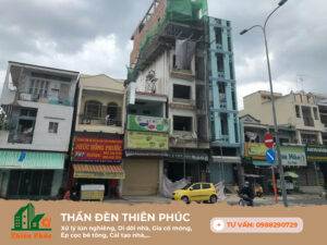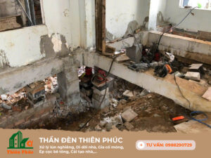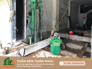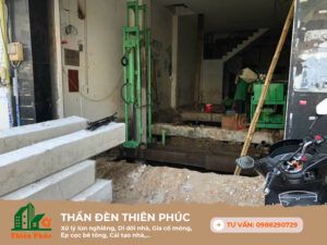 Hạn mục: Ép 14 tim cọc bê tông tăng cường móng, chống lún, Kích chỉnh nghiêng & lên thêm 2 tầng.