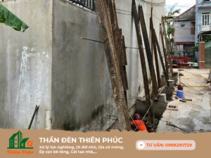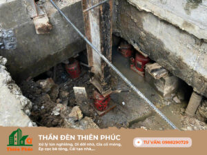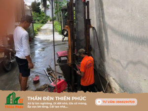 - Hạn mục: ép 6 tim cọc bê tông gia cường móng, chống lún, kích chỉnh nghiêng nhà,
